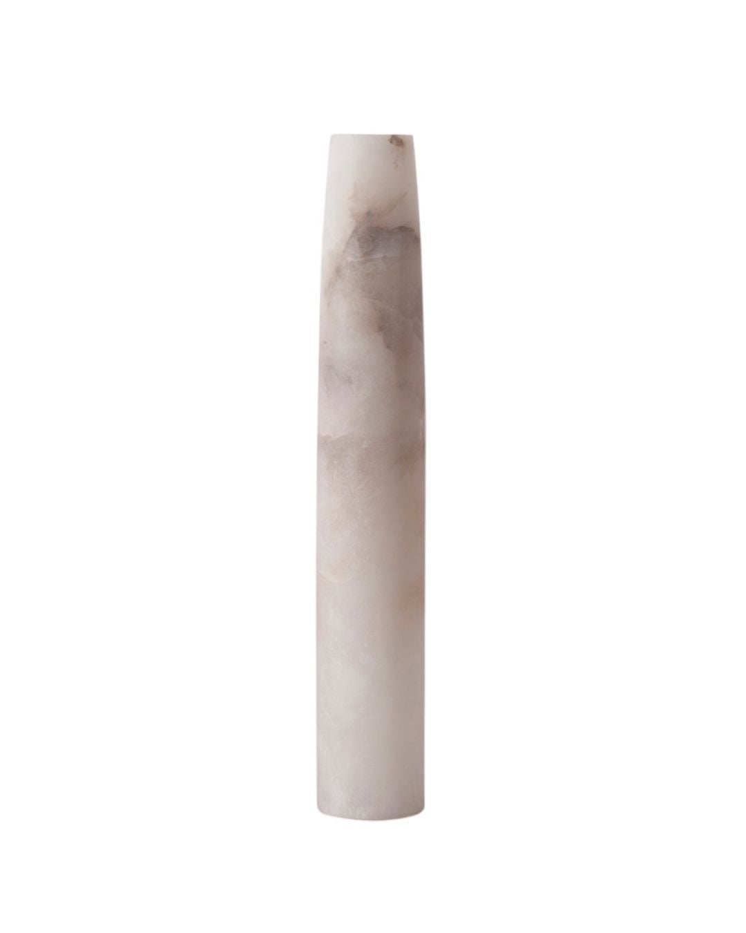 Het zachte, natuurlijke karakter van alabaster zorgt voor een warme en verfijnde look. In combinatie met de slanke vormgeving ontstaat een tijdloos object dat zowel met als zonder bloemen prachtig tot zijn recht komt. De vazen zijn waterdicht en daardoor perfect geschikt voor verse bloemen, maar ook als decoratief object op zichzelf.